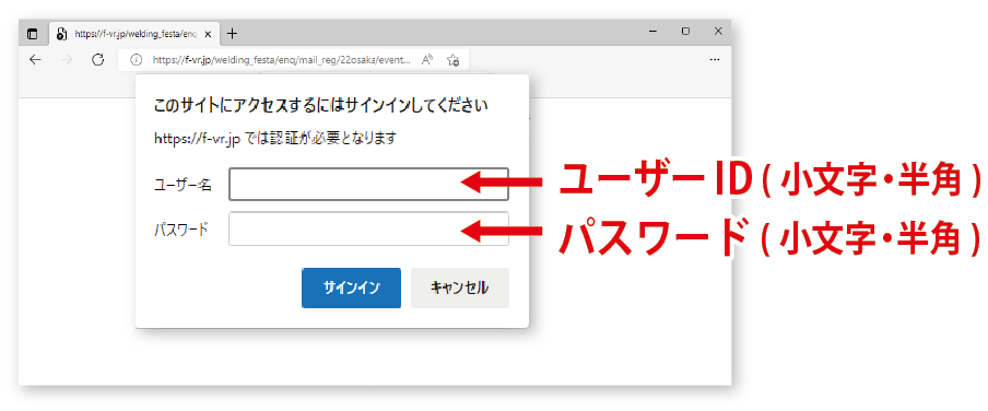 「ユーザーID」「パスワード」につきましては、ご紹介いただきました主催店までお問い合わせ下さい。